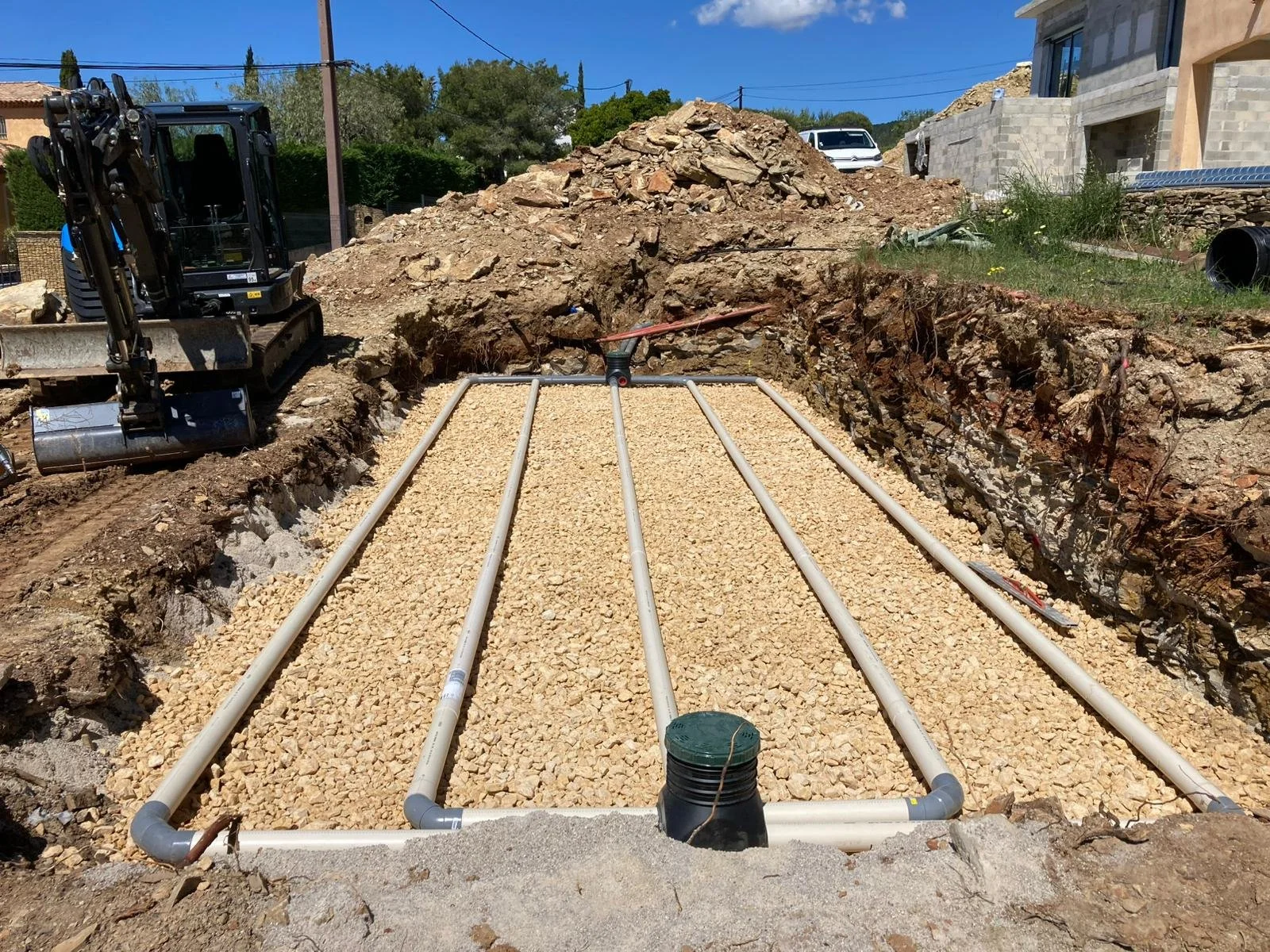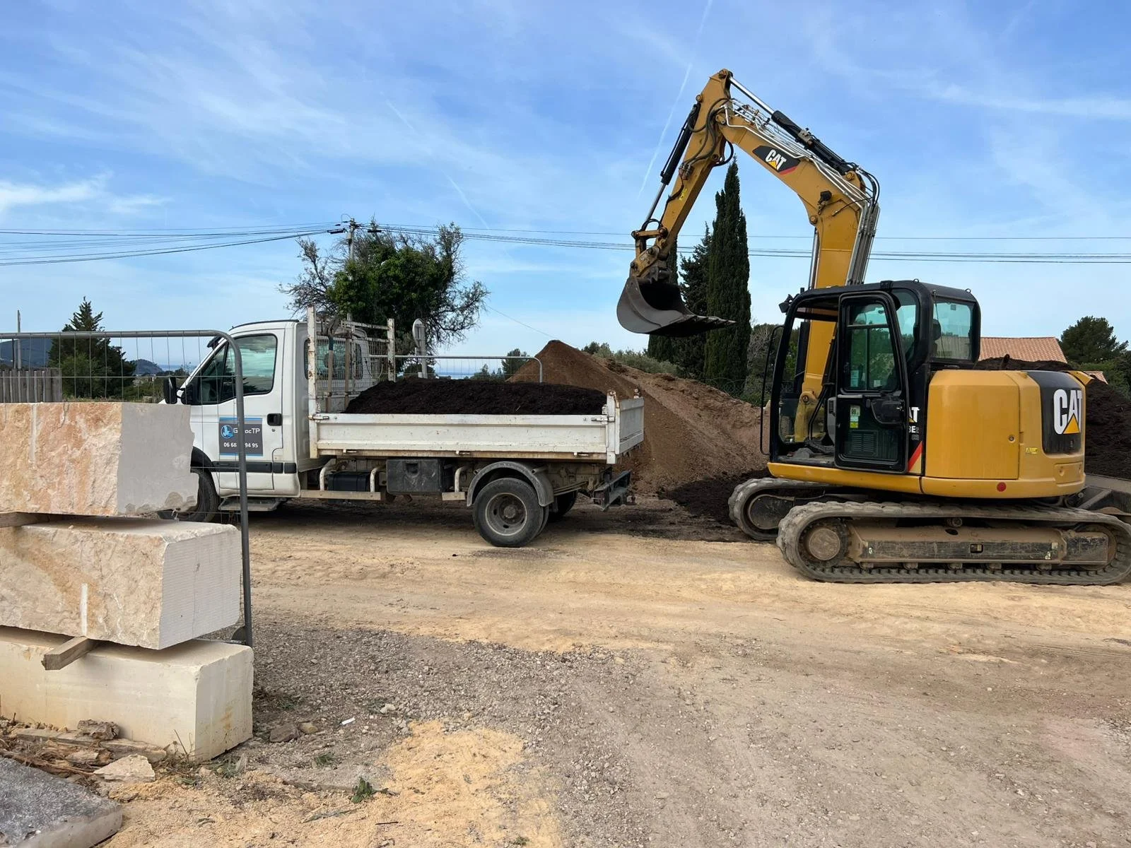 Nous pouvons réaliser du terrassement pour la construction ainsi que l'aménagement de votre terrain par différents matériaux.