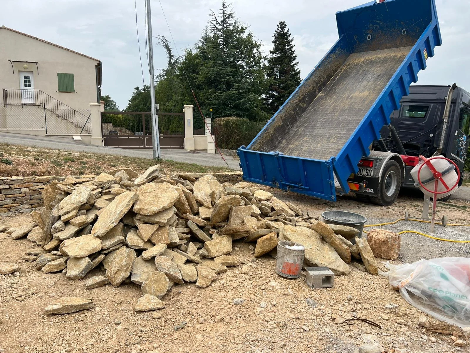 consistant à empiler minutieusement des blocs de pierre ou de roche pour stabiliser un terrain, prévenir l’érosion ou embellir un espace extérieur. Il est utilisé aussi bien en génie civil (protection des berges, soutènement de talus) que dans l’aménagement paysager (murs décoratifs, création de restanques dans des terrains escarpés pour optimiser un maximum de place ).